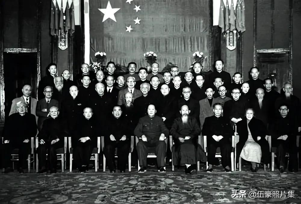 1949年10月在线证劵放大平台,中央人民政府委员会部分委员合影。前排左起:林伯渠、司徒美堂、李济深、朱德、毛泽东、张澜、刘少奇、何香凝、高岗。